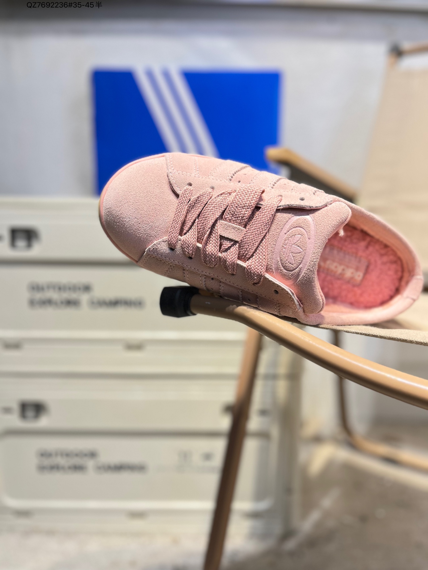 Adidas CAMPUS 00S WTR LO百搭單品阿迪加絨半拖學院系列麵包風經典復古低幫百搭休 粉色