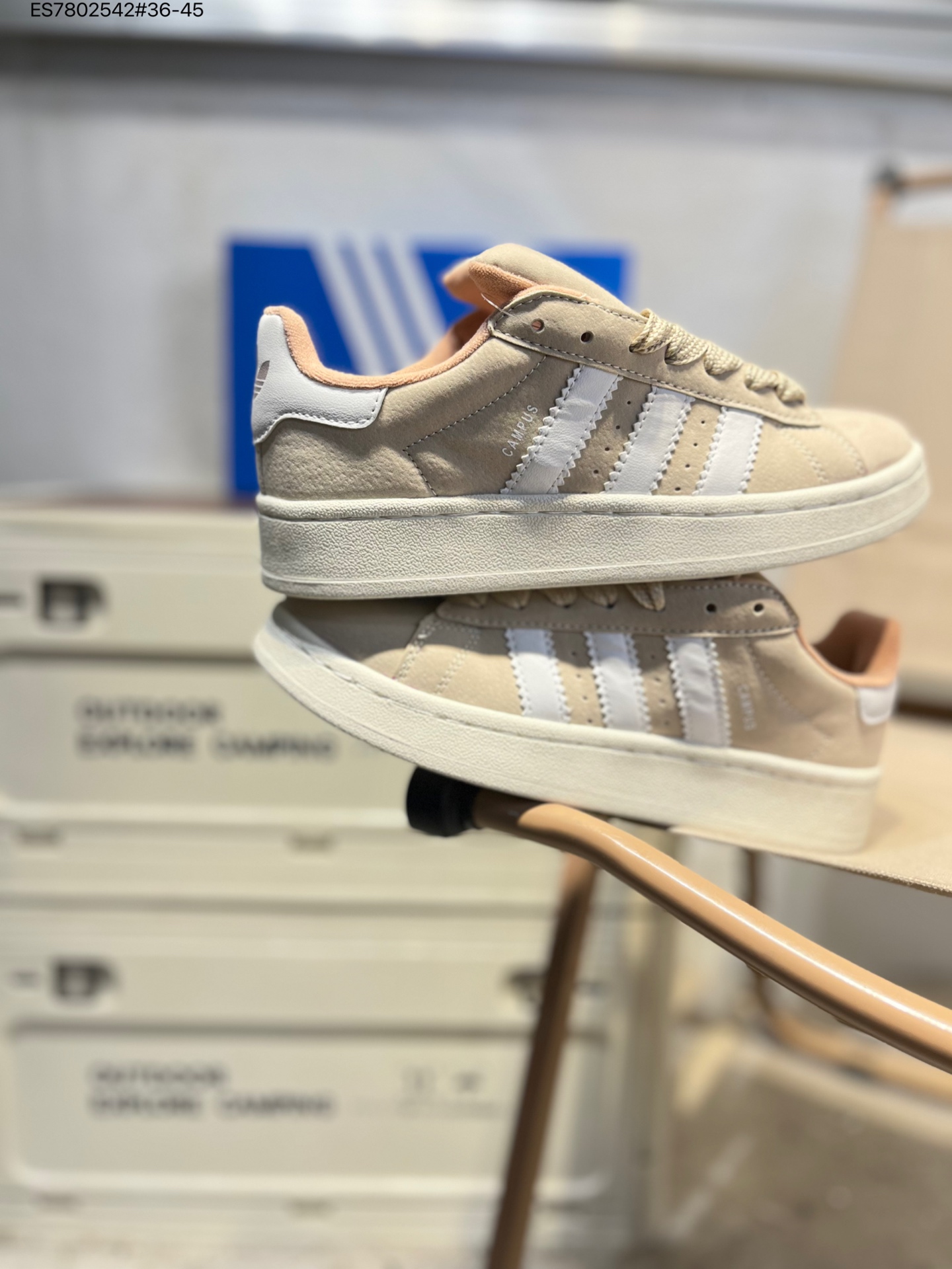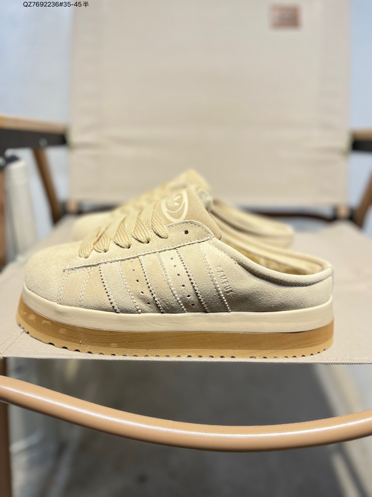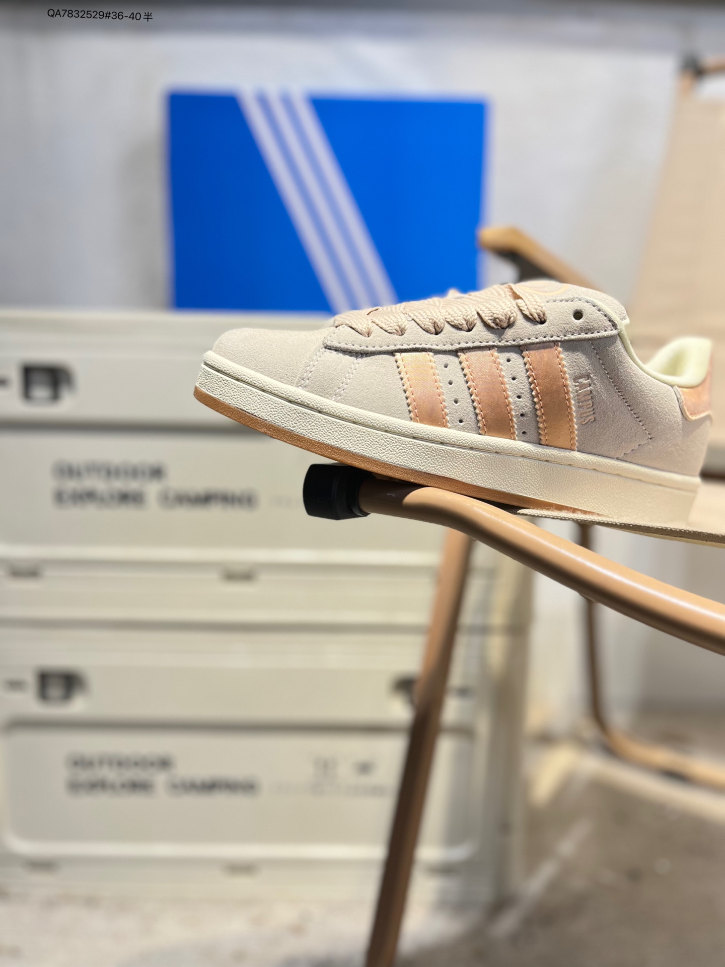 Adidas CAMPUS 00S WTR LO百搭單品阿迪加絨半拖學院系列麵包風經典復古低幫百搭休 米色