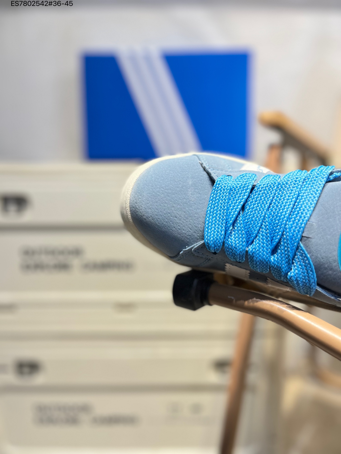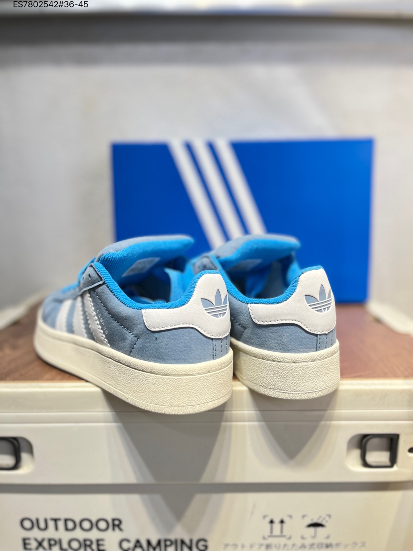 - 標誌性輪廓與細節:這款鞋復刻了 Campus 系列經典低幫輪廓,並融入千禧年滑板鞋的飽滿設計,鞋身圓潤飽滿,完美契合 “麵包鞋” 的視覺特徵。鞋身側面是辨識度極高的鋸齒狀三條紋,鞋舌和鞋跟處分別點綴三葉草標誌,既呼應系列經典元素,又強化了品牌辨識度,整體復古氛圍拉滿。