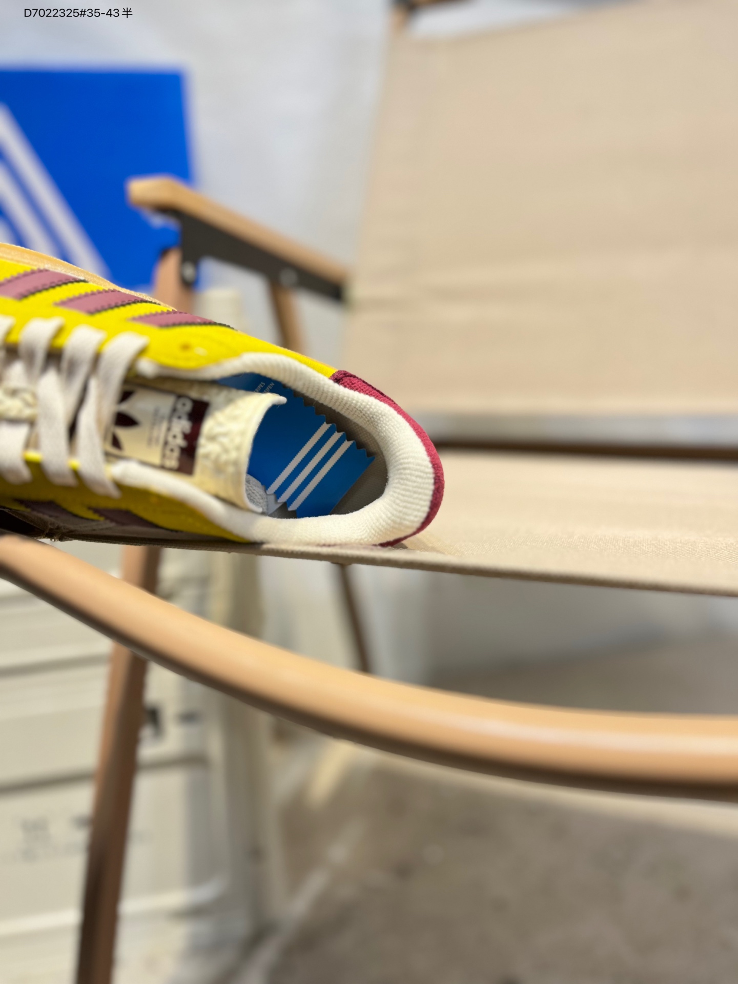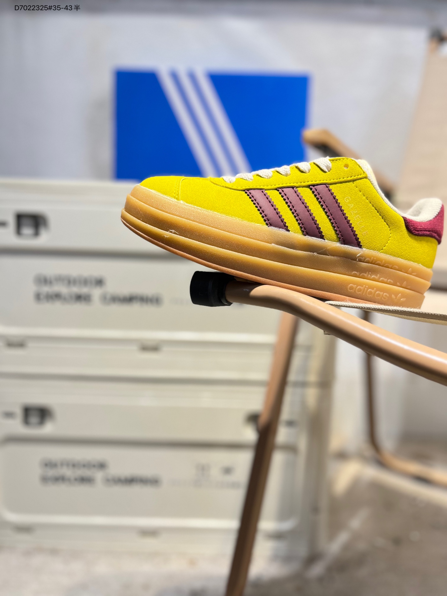 - 標誌性輪廓與細節:這款鞋復刻了 Campus 系列經典低幫輪廓,並融入千禧年滑板鞋的飽滿設計,鞋身圓潤飽滿,完美契合 “麵包鞋” 的視覺特徵。鞋身側面是辨識度極高的鋸齒狀三條紋,鞋舌和鞋跟處分別點綴三葉草標誌,既呼應系列經典元素,又強化了品牌辨識度,整體復古氛圍拉滿。
