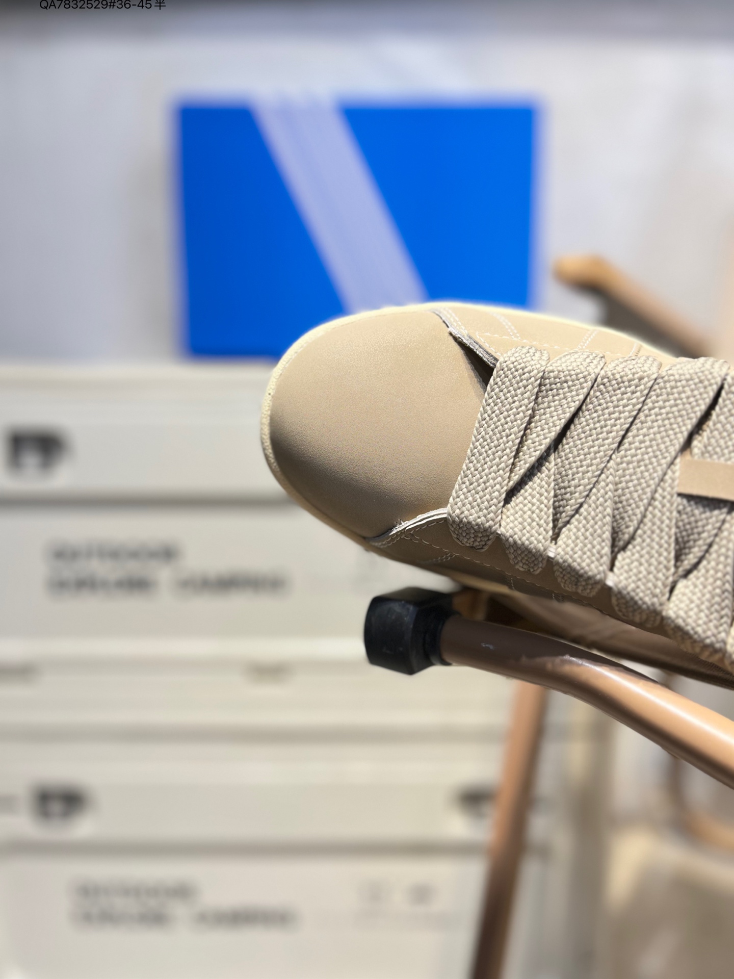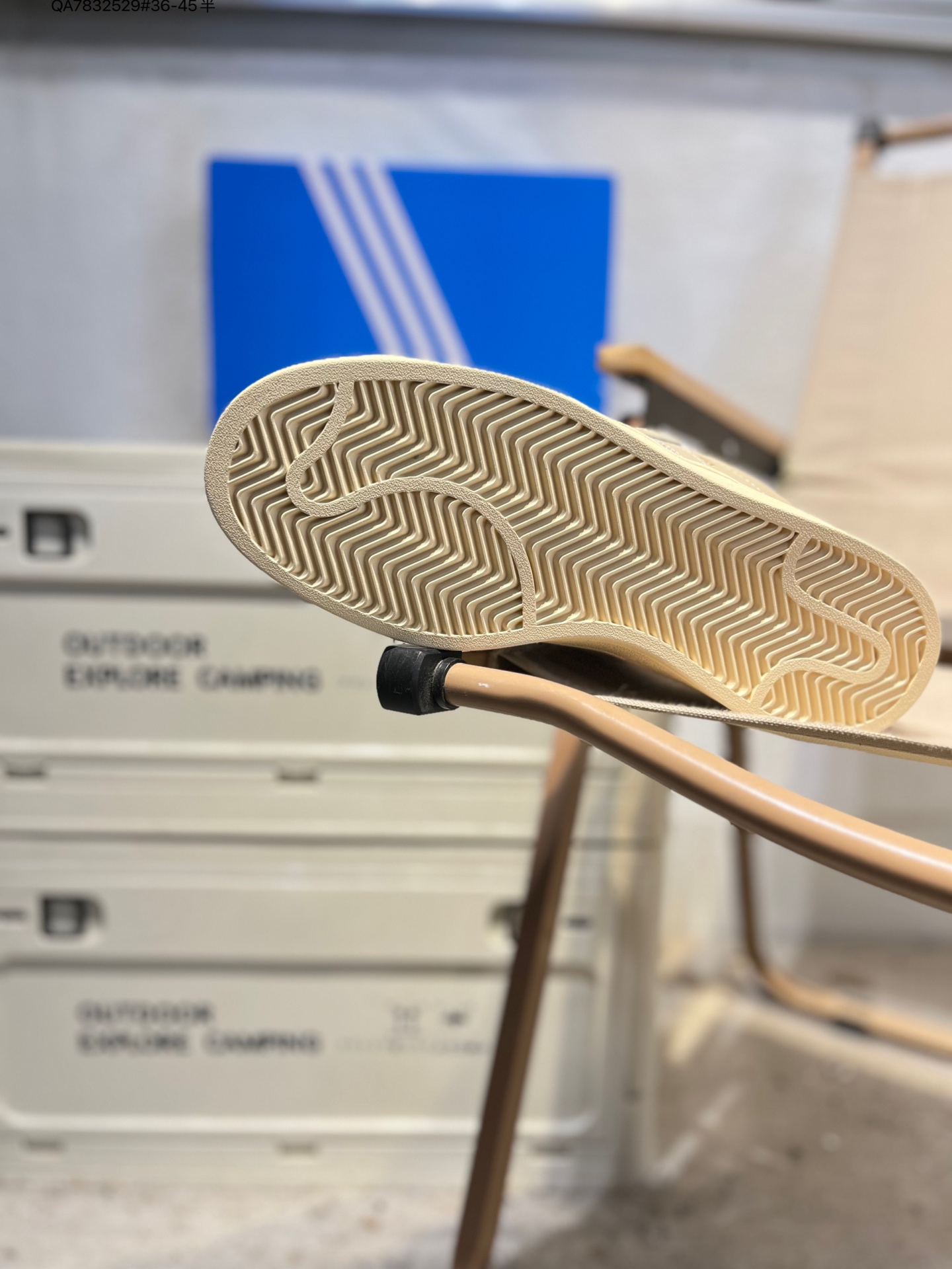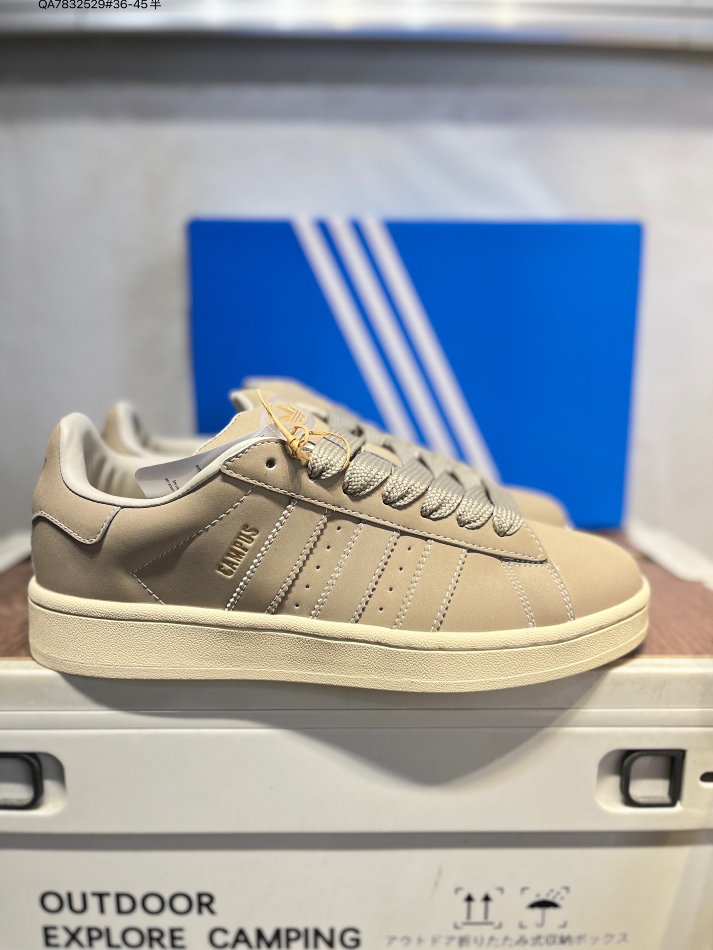 - 標誌性輪廓與細節:這款鞋復刻了 Campus 系列經典低幫輪廓,並融入千禧年滑板鞋的飽滿設計,鞋身圓潤飽滿,完美契合 “麵包鞋” 的視覺特徵。鞋身側面是辨識度極高的鋸齒狀三條紋,鞋舌和鞋跟處分別點綴三葉草標誌,既呼應系列經典元素,又強化了品牌辨識度,整體復古氛圍拉滿。