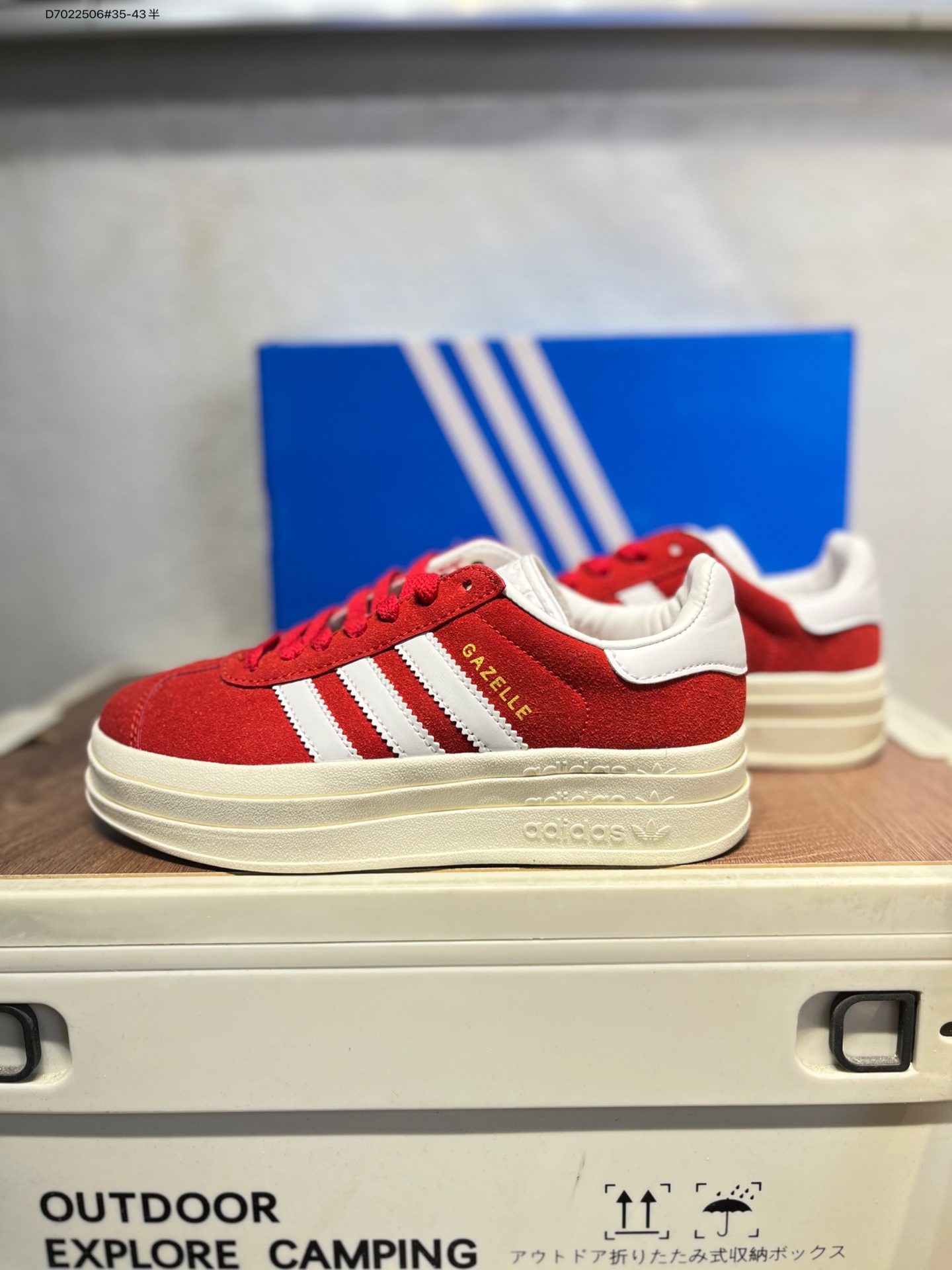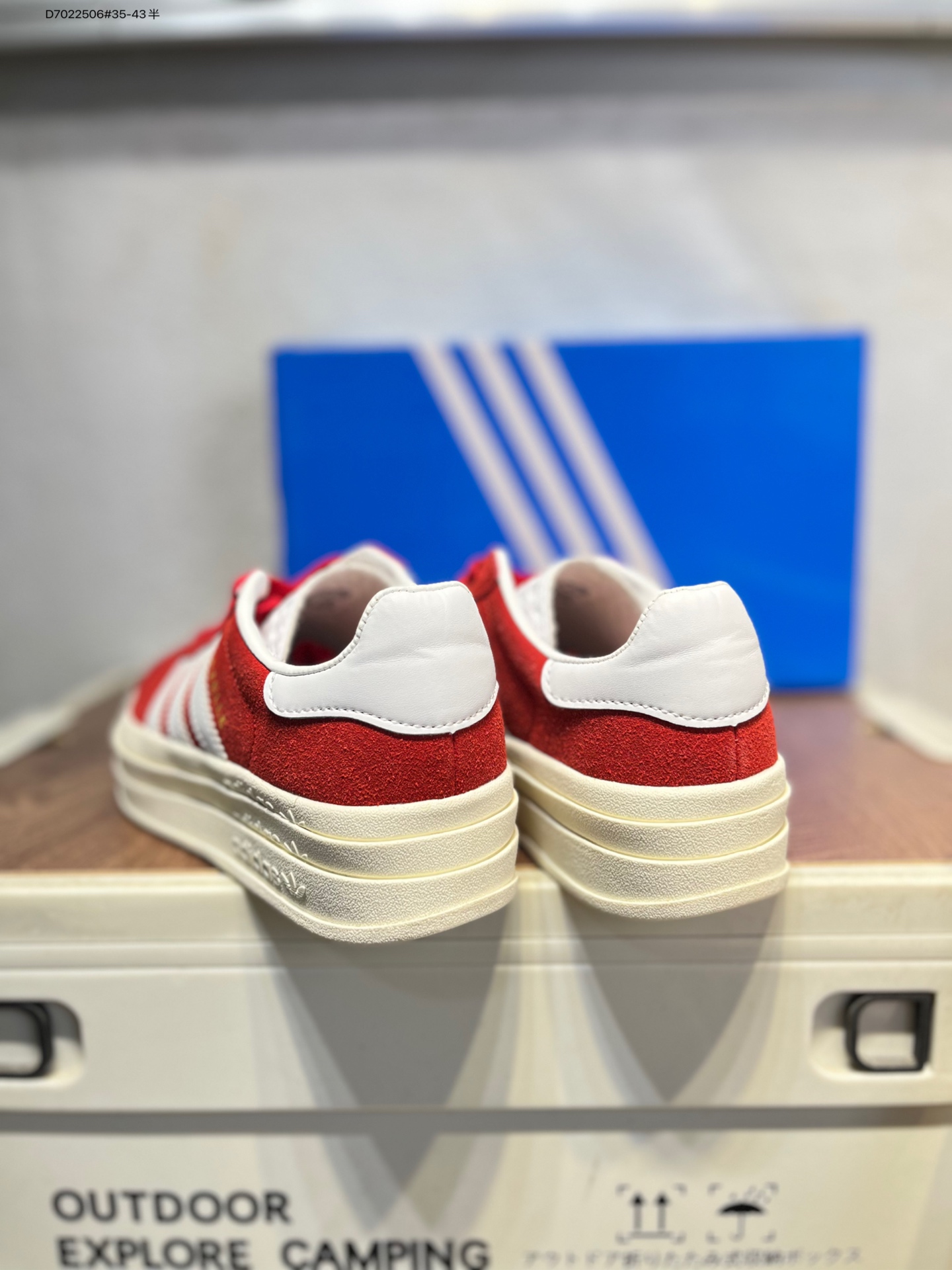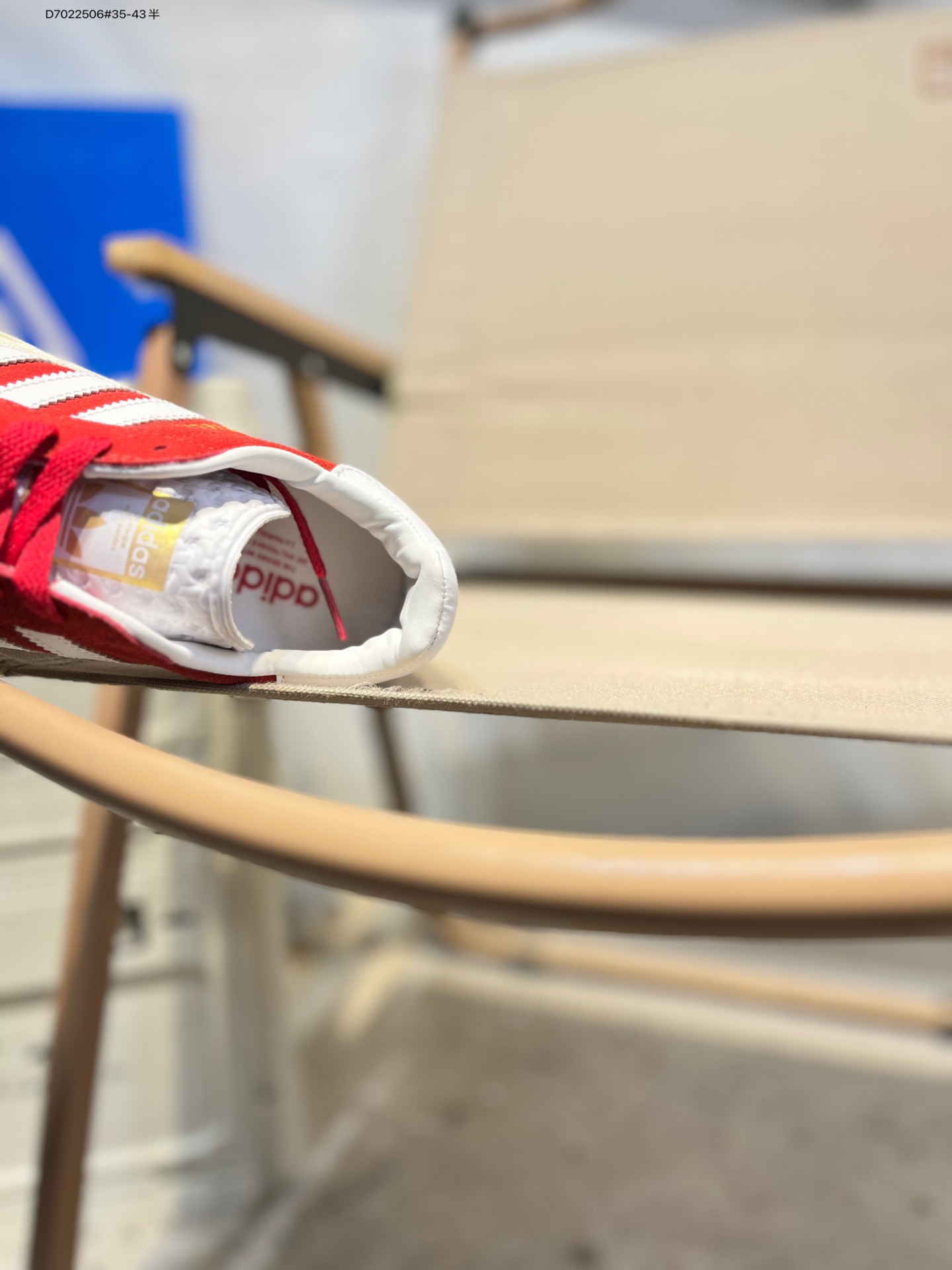 - 標誌性輪廓與細節:這款鞋復刻了 Campus 系列經典低幫輪廓,並融入千禧年滑板鞋的飽滿設計,鞋身圓潤飽滿,完美契合 “麵包鞋” 的視覺特徵。鞋身側面是辨識度極高的鋸齒狀三條紋,鞋舌和鞋跟處分別點綴三葉草標誌,既呼應系列經典元素,又強化了品牌辨識度,整體復古氛圍拉滿。