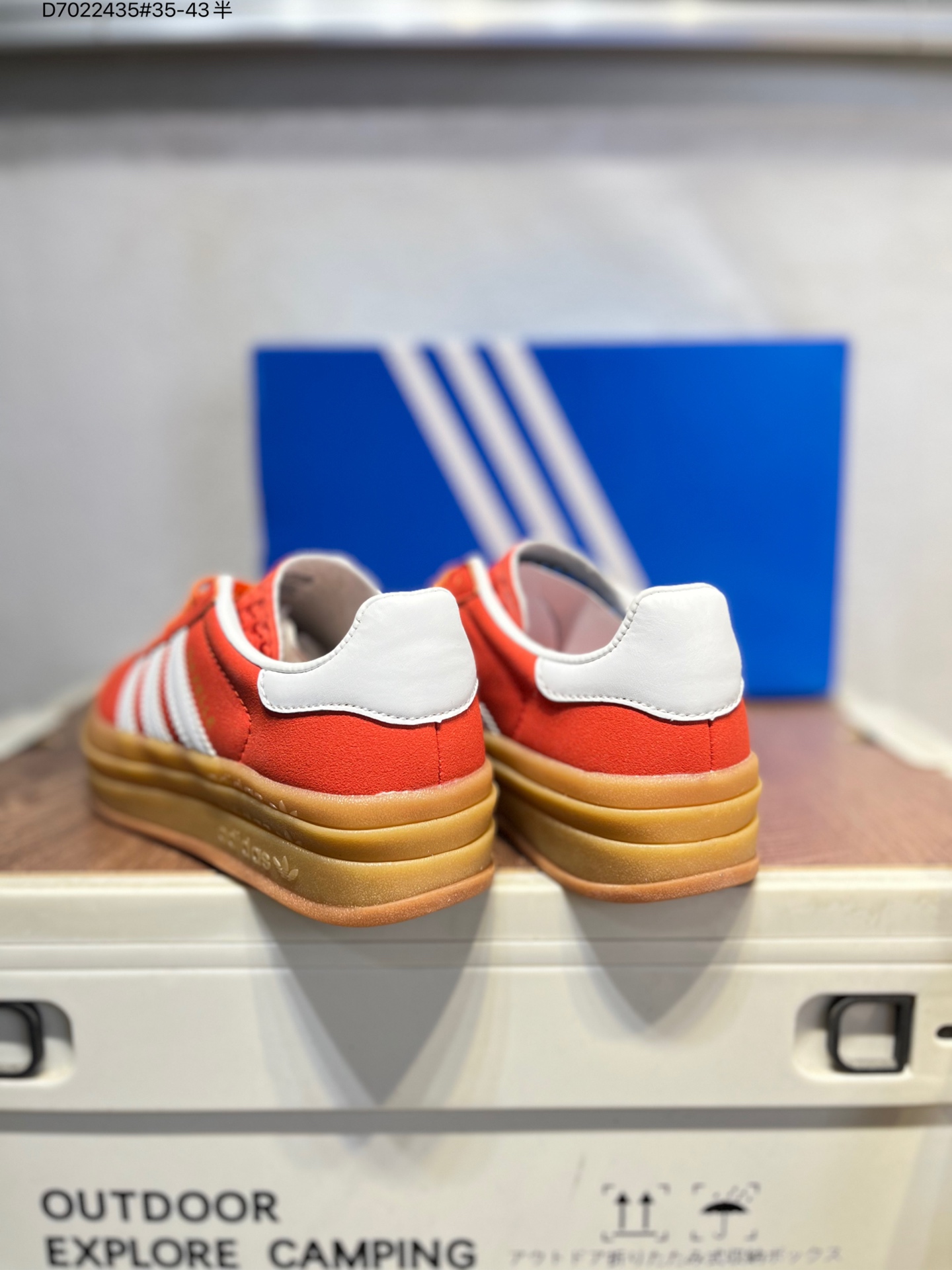- 標誌性輪廓與細節:這款鞋復刻了 Campus 系列經典低幫輪廓,並融入千禧年滑板鞋的飽滿設計,鞋身圓潤飽滿,完美契合 “麵包鞋” 的視覺特徵。鞋身側面是辨識度極高的鋸齒狀三條紋,鞋舌和鞋跟處分別點綴三葉草標誌,既呼應系列經典元素,又強化了品牌辨識度,整體復古氛圍拉滿。