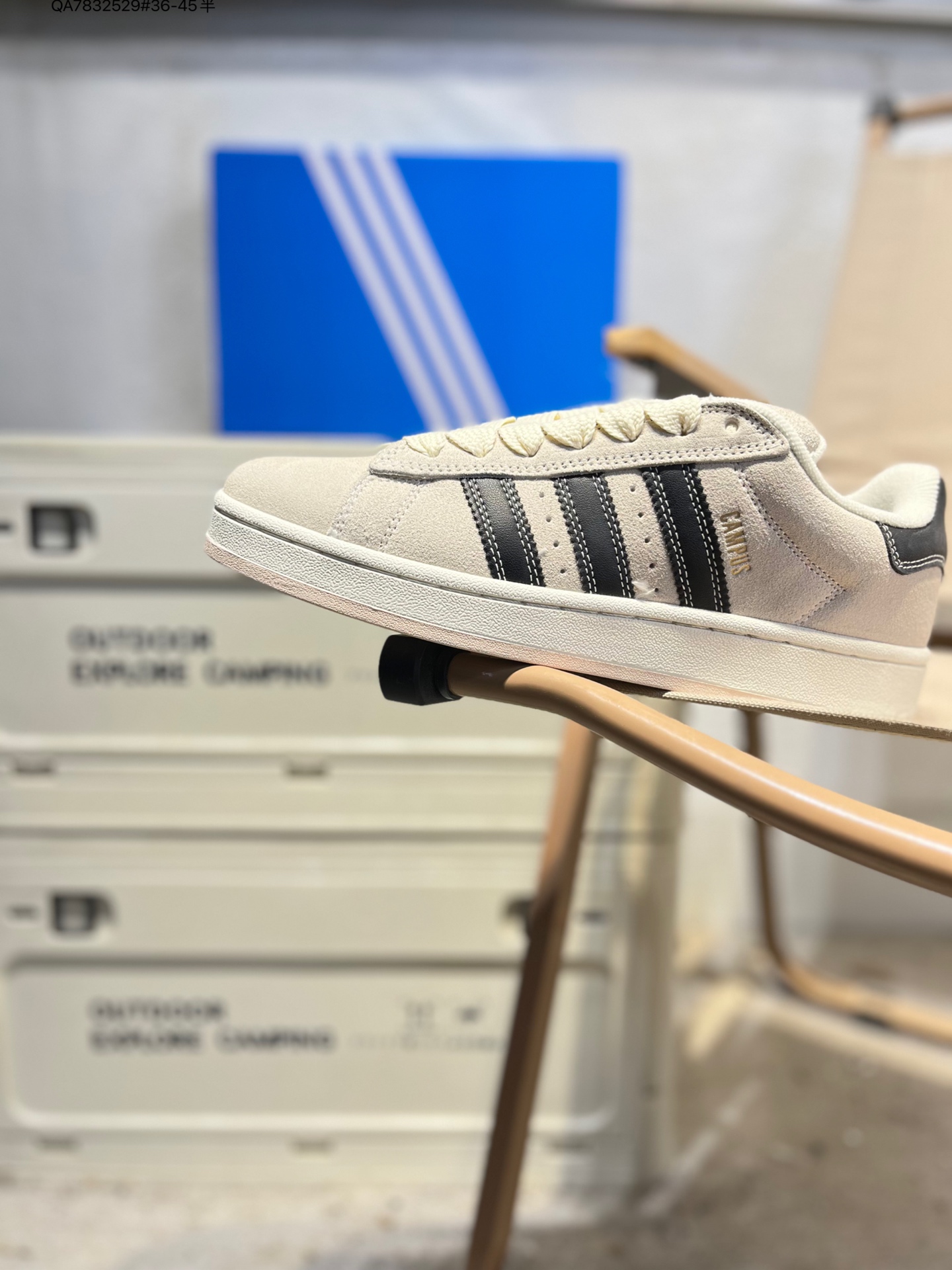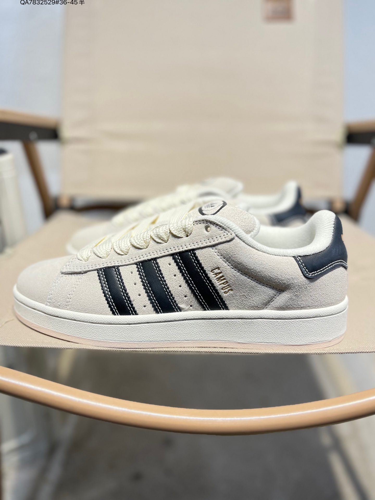 - 標誌性輪廓與細節:這款鞋復刻了 Campus 系列經典低幫輪廓,並融入千禧年滑板鞋的飽滿設計,鞋身圓潤飽滿,完美契合 “麵包鞋” 的視覺特徵。鞋身側面是辨識度極高的鋸齒狀三條紋,鞋舌和鞋跟處分別點綴三葉草標誌,既呼應系列經典元素,又強化了品牌辨識度,整體復古氛圍拉滿。