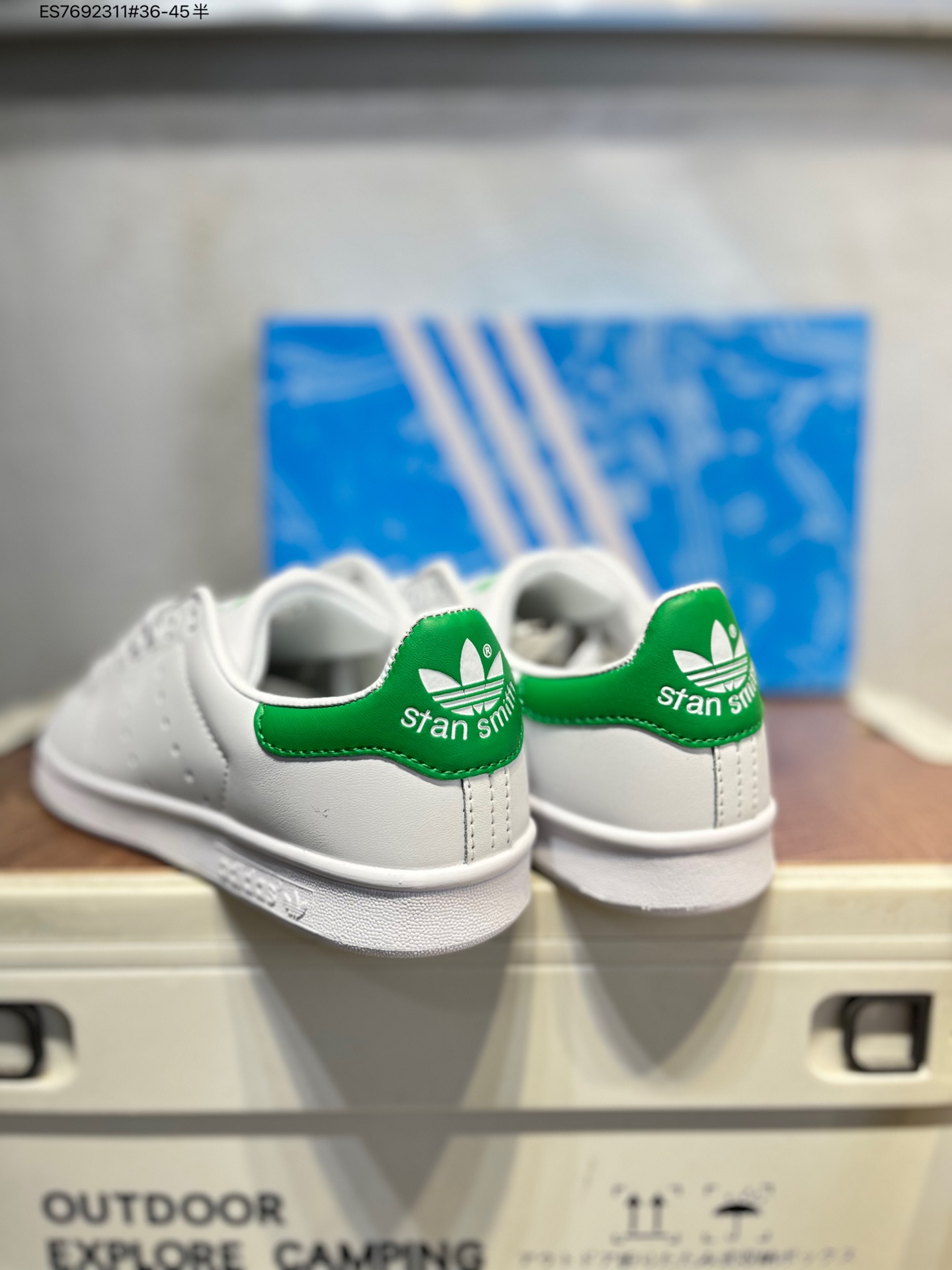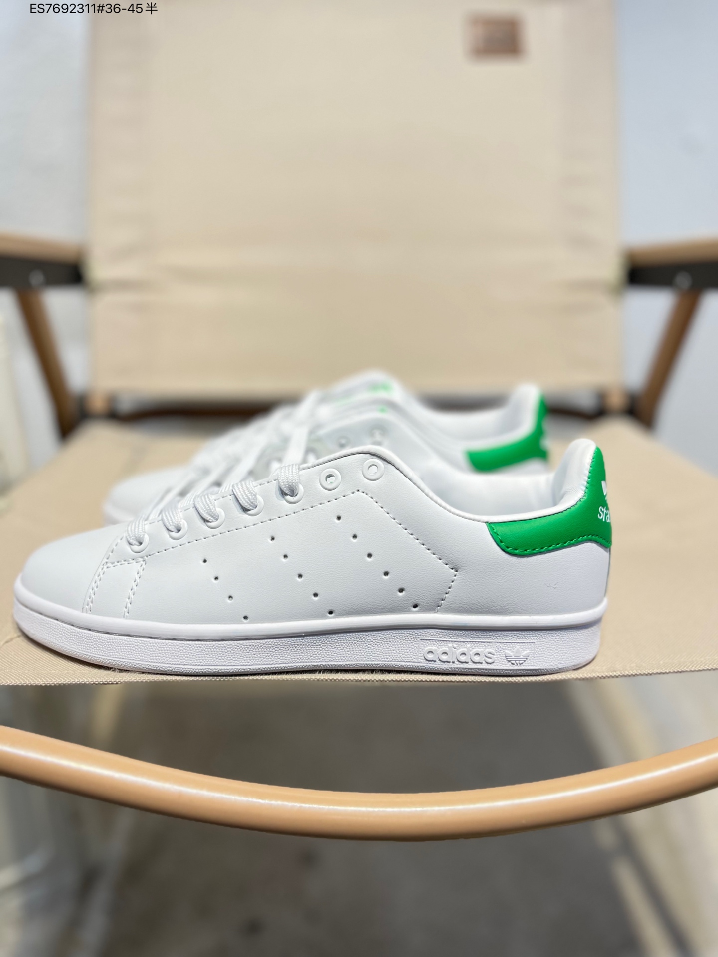 - 颜色搭配:该系列有多种配色可供选择,常见的有经典的白绿配色,白色鞋身搭配绿色后跟标志,清新百搭;还有白黑、白金等配色,满足不同消费者的个性化搭配需求adidas-originals.com。PfW 版本可能在配色上有独特之处,如采用撞色设计或特殊的色调组合,使鞋子更具辨识度。