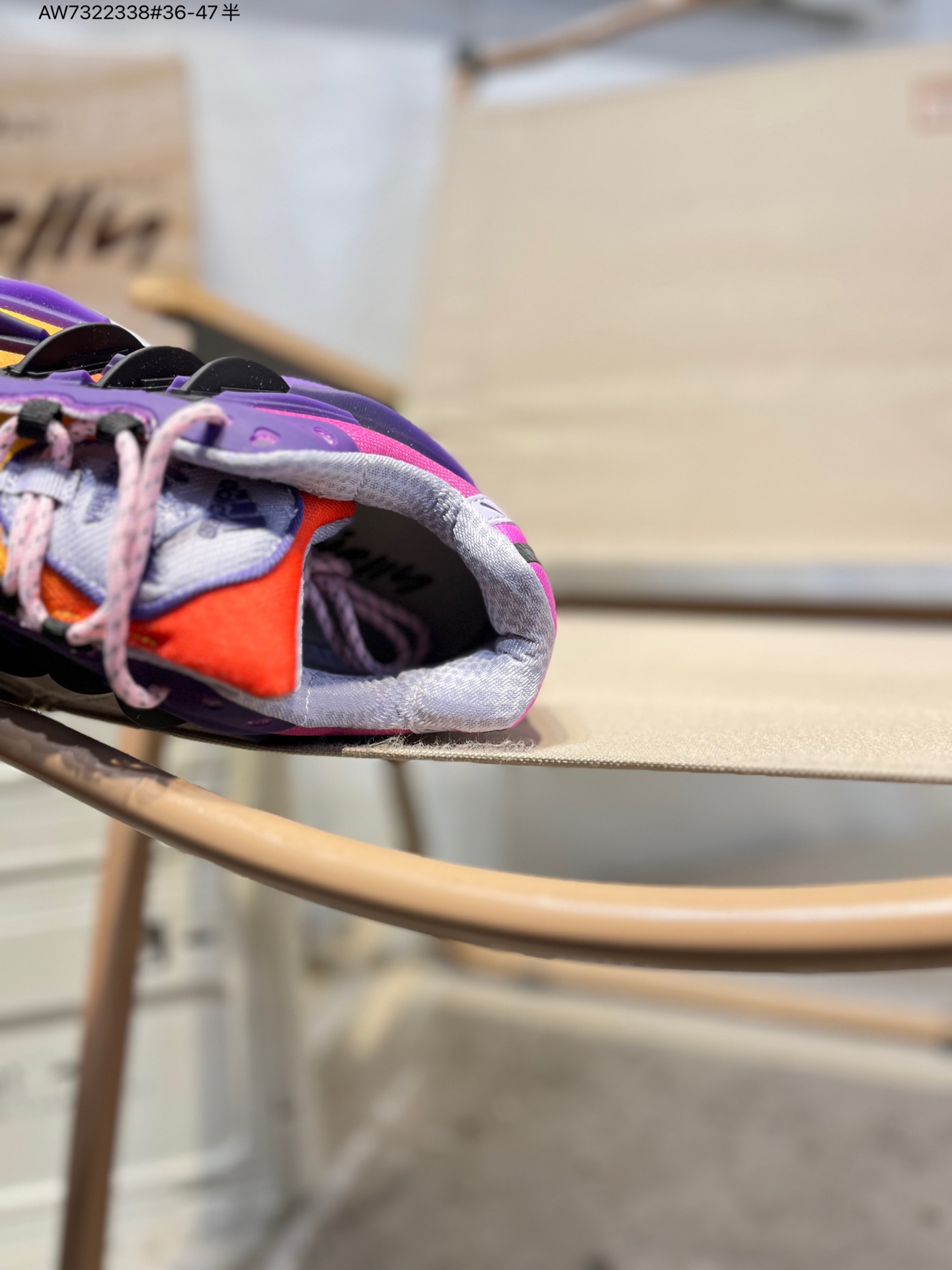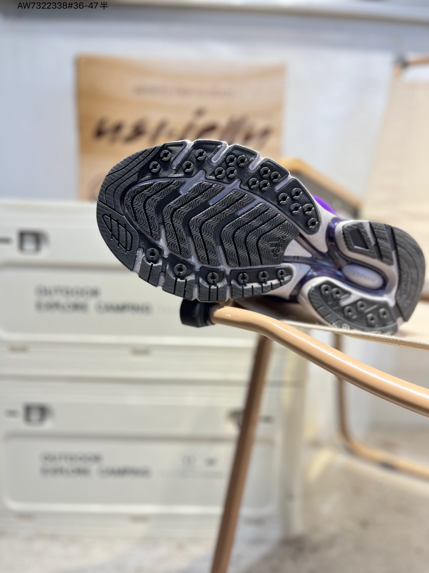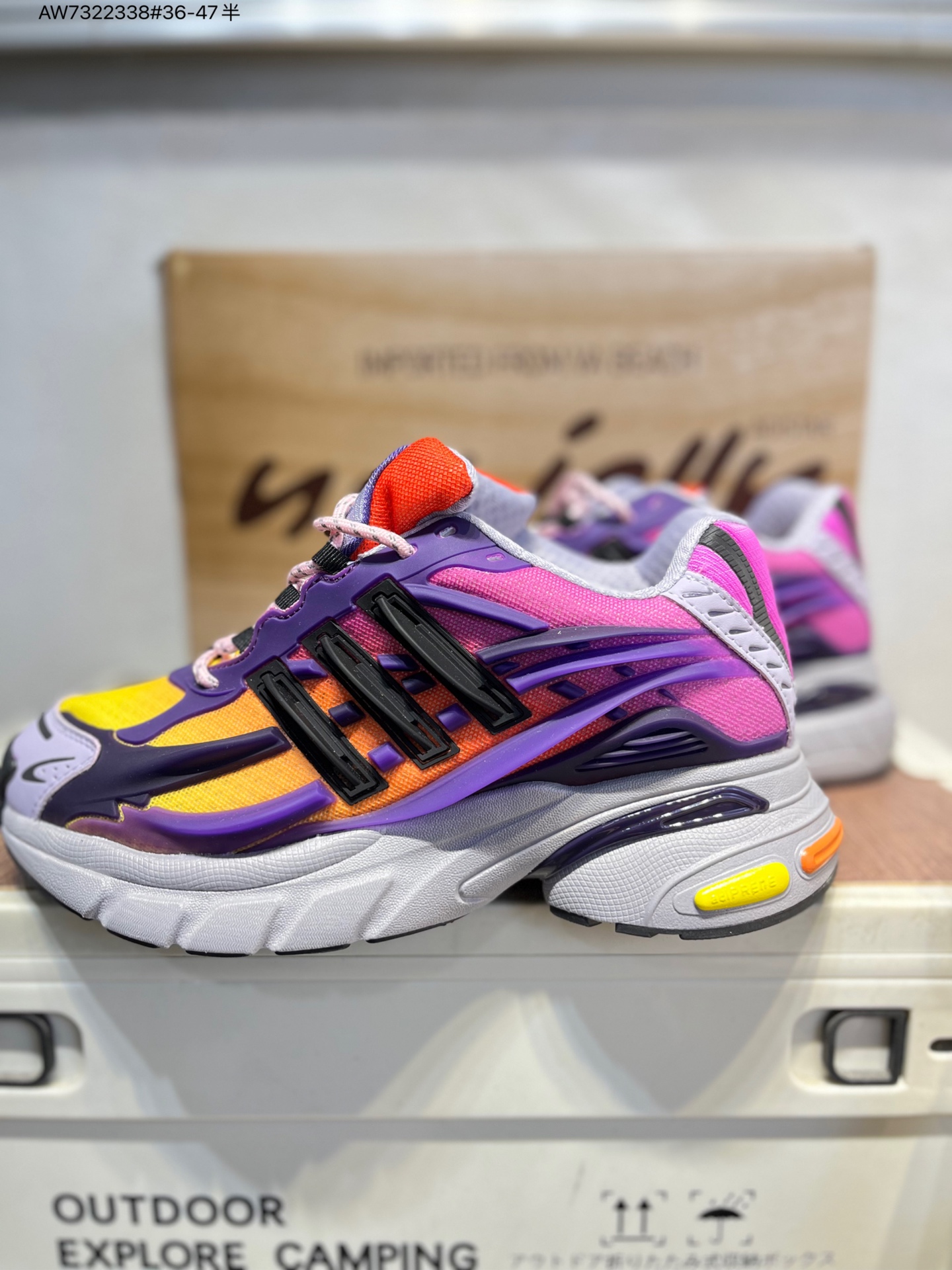 :鞋面采用网布与皮革拼接,网布区域负责透气,皮革模块为关键部位提供防护。经典三条纹化作立体凸起的 “铠甲片” 嵌进鞋身,鞋舌上有 “Jellyfish” 标识和 “Virginia” 字样,后跟处有 adidas 经典 Logo 与橙白拼接的鞋提。